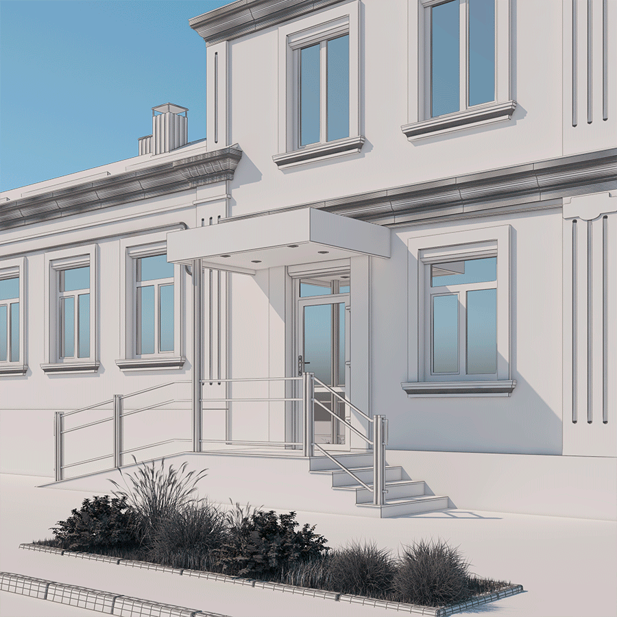 Подчеркнем архитектурные элементы фасада. И, потом, какой цвет лучше подходит для медицины, чем белый?